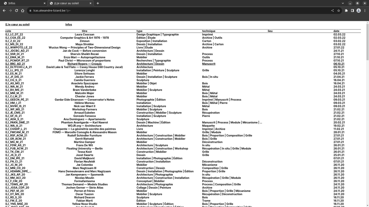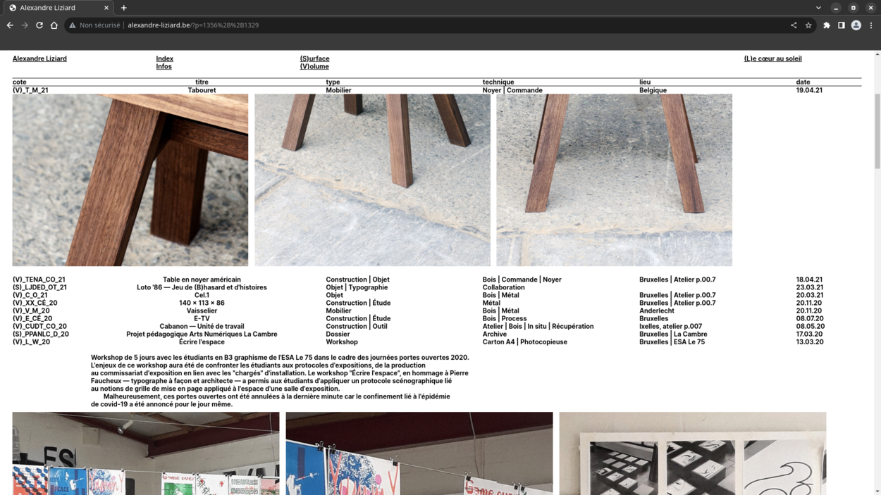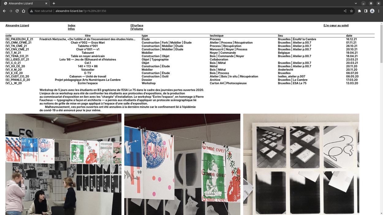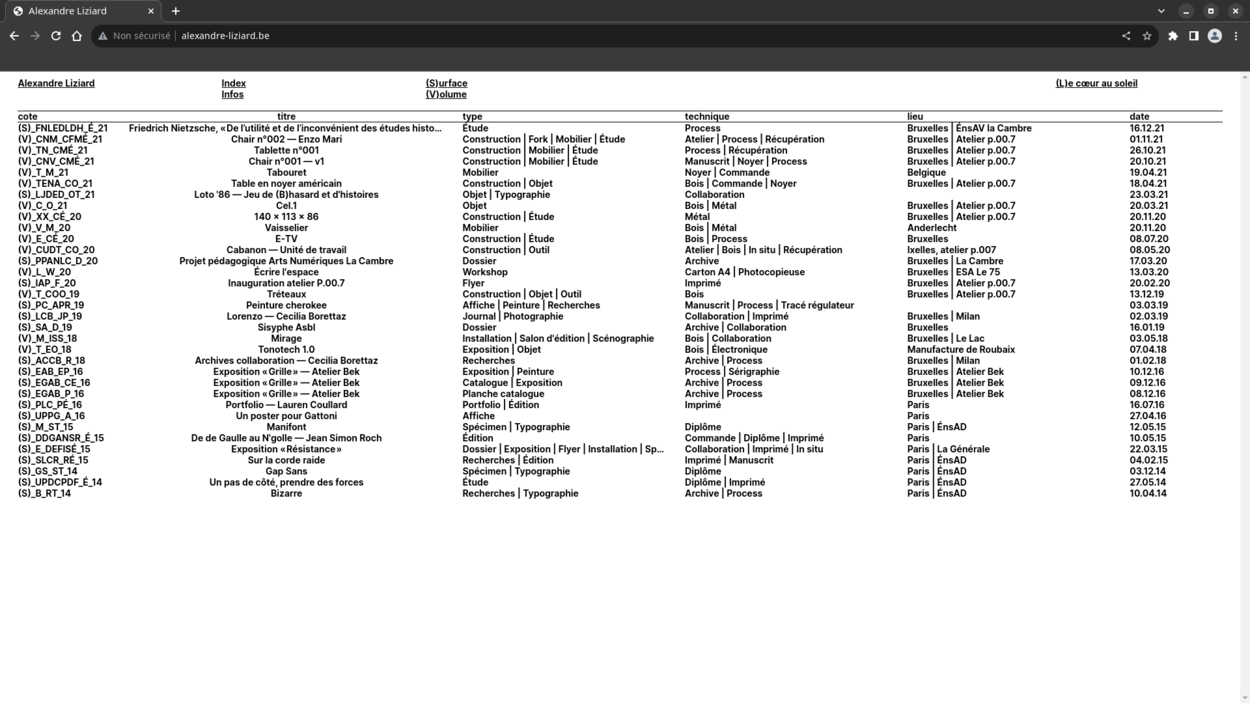 Website for Alexandre Liziard, graphic designer, builder, researcher and teacher.